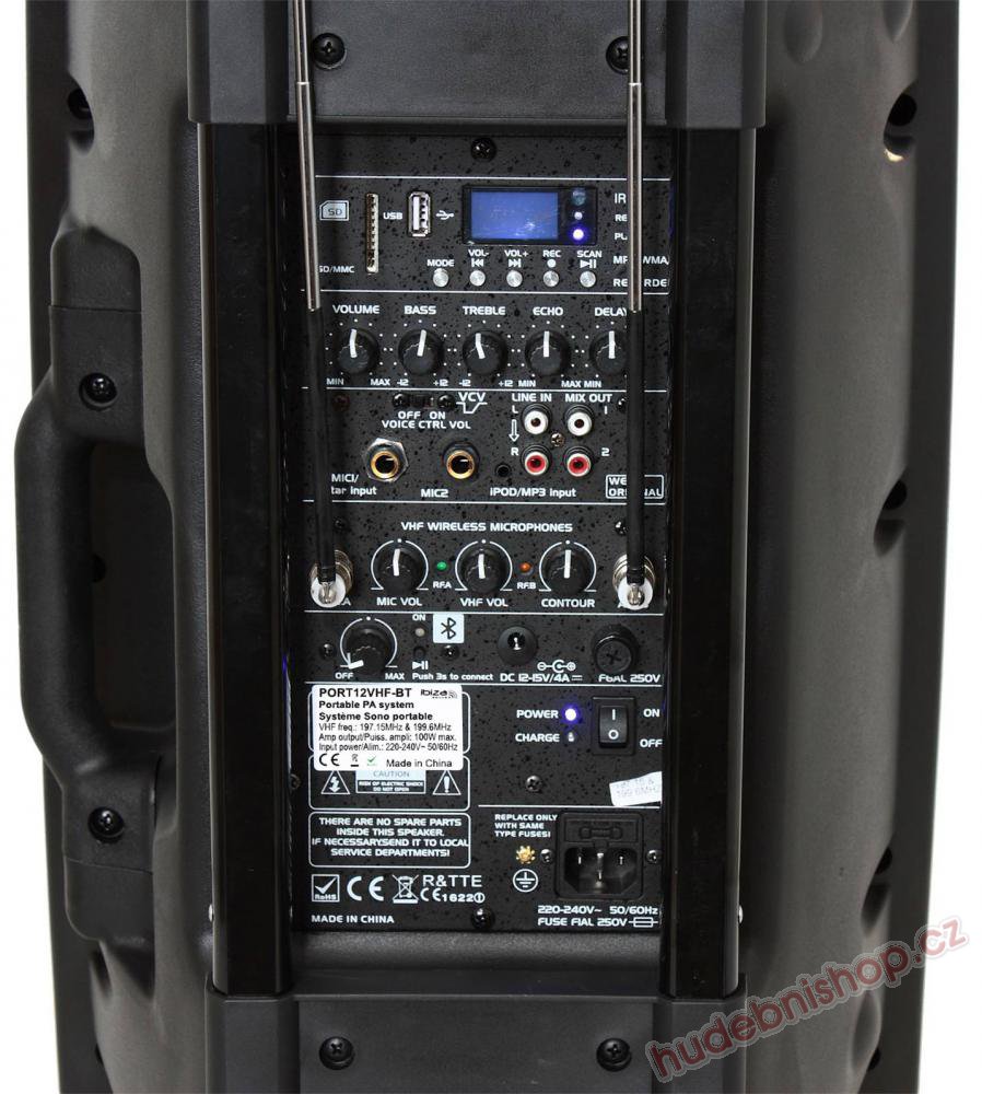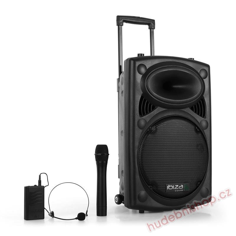 - přenosný PA systém s 30 cm (12 ") subwooferem a RMS výkonem 350 W