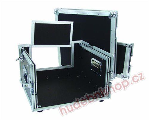 Speciální Profi case pro mobilní DJe. 4HE vertikálně, 10HE horizontálně. Velice kvalitní zpracování, vyrobeno z 9mm překližky, 5 zámků, 2 ucha pro snadnější manipulaci, 4 vyztužené ocelové nožičky, 2 odnímatelná víka. Rozměr: 575 x 535 x 300 mm.