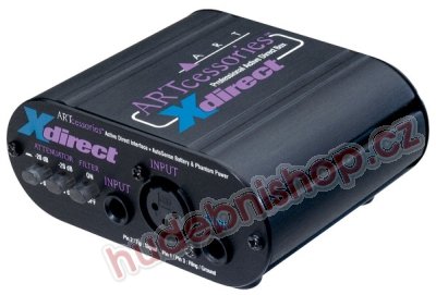 XDirect od firmy ART je vysoce kvalitní aktivní direct box, který vám umožní propojit linkový, nástrojový nebo silový signál s mixážním pultem nebo jiným zařízením se symetrickým vstupem. Signál z vysokoimpedančního 1/4“ Jacku je transformátorem překonvertován na symetrický nizkoimpedanční signál. XDirect v sobě kombinuje široký frekvenční rozsah a schopnost zpracovávat i zesílený signál, díky čemuž nabízí čistý a transparentní zvuk, což oceníte zejména v rušných podmínkách, např. při živém vystupování. XDirect disponuje i Low-Pass filtrem, funkcí Ground Lift a obrácením fáze, napájet jej lze 9V baterií nebo phantomovým napájením na XLR vstupu.