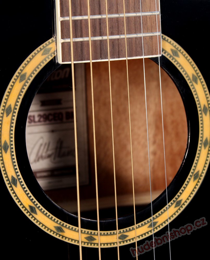 Elektro-akustická kytara firmy Ashton s úzkým tělem SL 29CEQ Ashton. S vestavěnou ladičkou a snímačem B-Band T35. Velmi dobré zpracování, skvělý zvuk. Díky menšímu tělu je vhodná pro menší hráče nebo na cestování. Barva: BK (černá).