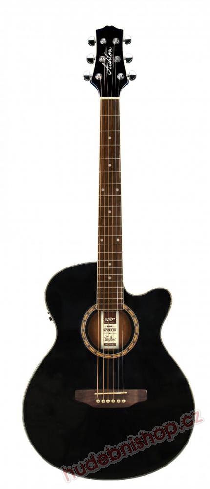 Elektro-akustická kytara firmy Ashton s úzkým tělem SL 29CEQ Ashton. S vestavěnou ladičkou a snímačem B-Band T35. Velmi dobré zpracování, skvělý zvuk. Díky menšímu tělu je vhodná pro menší hráče nebo na cestování. Barva: BK (černá).