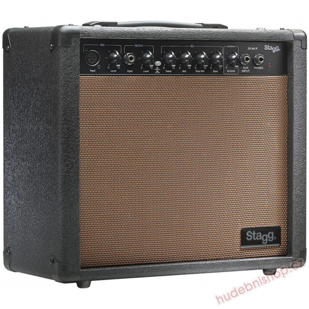 Kombo pro akustické kytary, zesilovač 20 W RMS, 8“ reproduktor, symetrický XLR vstup pro mikrofon se samostatným ovládáním hlasitosti, vstup 6,3 mm jack s přepínáním aktivního nebo pasivního snímání, ovládání hlasitosti, třípásmový ekvalizér s parametrickými středy, zabudovaný pružinový reverb s ovládáním úrovně, vstup 6,3 mm jack pro CD/MP3 a výstup 6,3 mm jack na sluchátka. Povrchová úprava béžový vinyl, rozměry 34 x 35 x 20 cm.