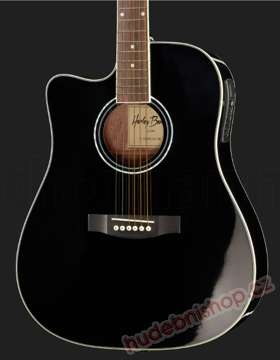Elektro - akustická kytara s výřezem pro levoruké hráče je vybavena aktivní elektronikou. - dreadnought-model s výřezem - 4-pásmový EQ - smrková horní deska - záda a boky Catalpa - hmatník palisandr šířka 43 mm - olejová mechanika - barva: černá