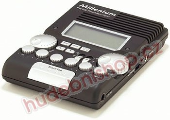 Millenium RW500, metronom, tempo 30-280 BPM, oddělené zesilování pro čtyř - osminový takt, LED Display, tlačítko Start - Stop, Line Out, 30 programů, možnost namontování na činelový stojan, včetně baterií, bez adapteru (9V 500mA DC)