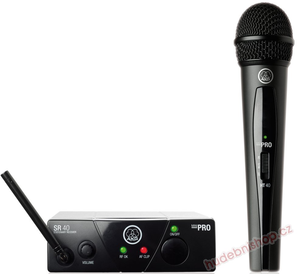 AKG WMS40 MINI VOCAL SET • Bezdrátový zpěvový set série WMS40 Mini, přijímač SR40 Mini mikrofonní vysílač HT40 Mini frekvenční rozsah 40Hz – 20kHz provoz až 30h na 1xAA baterii technologie High Definition Audio