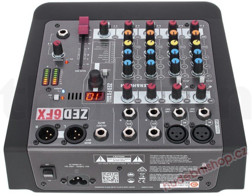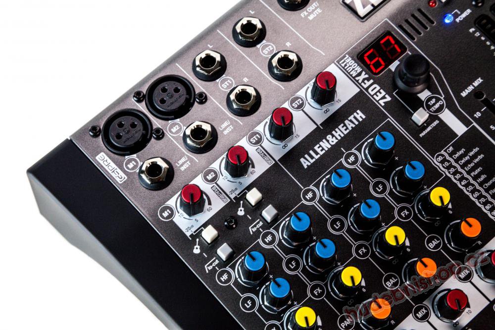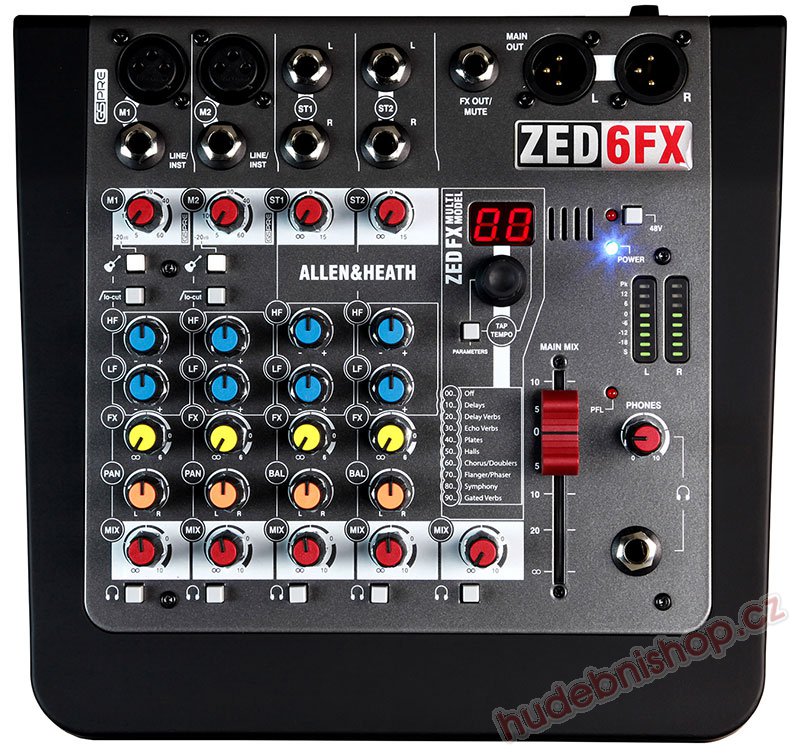 ZED-6FX jako první mixážní pult ve své třídě nabízí speciálně navrženou sadu efektů obsahující reverb, delay a další víceúčelové efekty, vytvořené nadšenci a odborníky v továrně Allen & Heath.