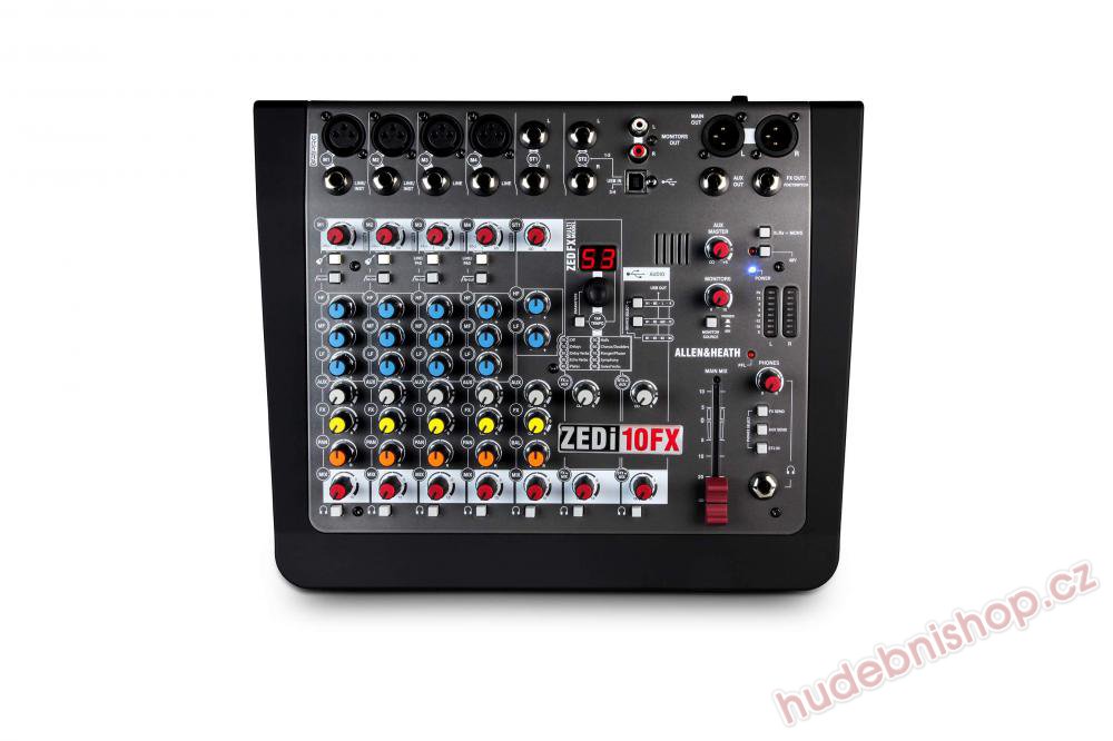 ZEDi-10FX ZEDi-10FX úspěšně propojuje svět analogových mixážních pultů a zvukových rozhraní studiové úrovni. Mixážní pult je navržen jako univerzální řešení pro hudebníky a všechny umělce, kteří potřebují snadným způsobem vytvořit nahrávku pro Soundcloud nebo YouTube na cestách i v klidu domova.