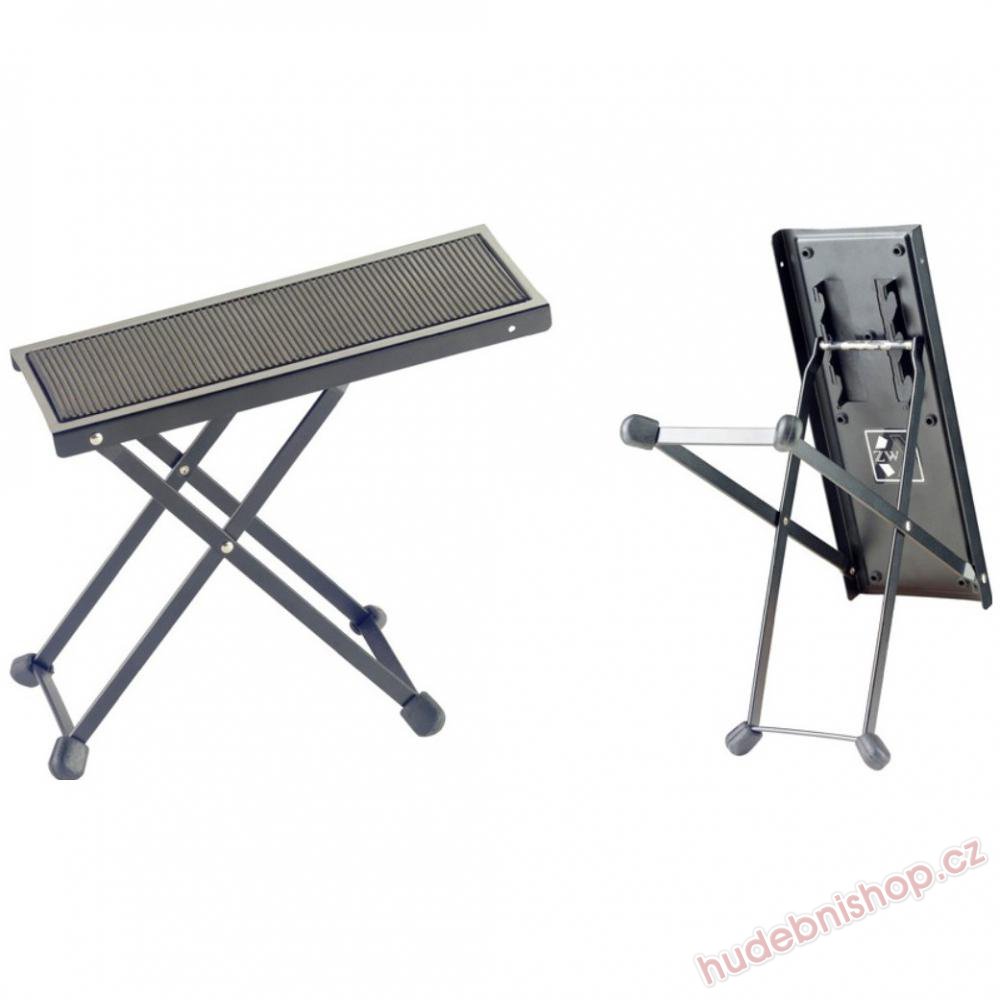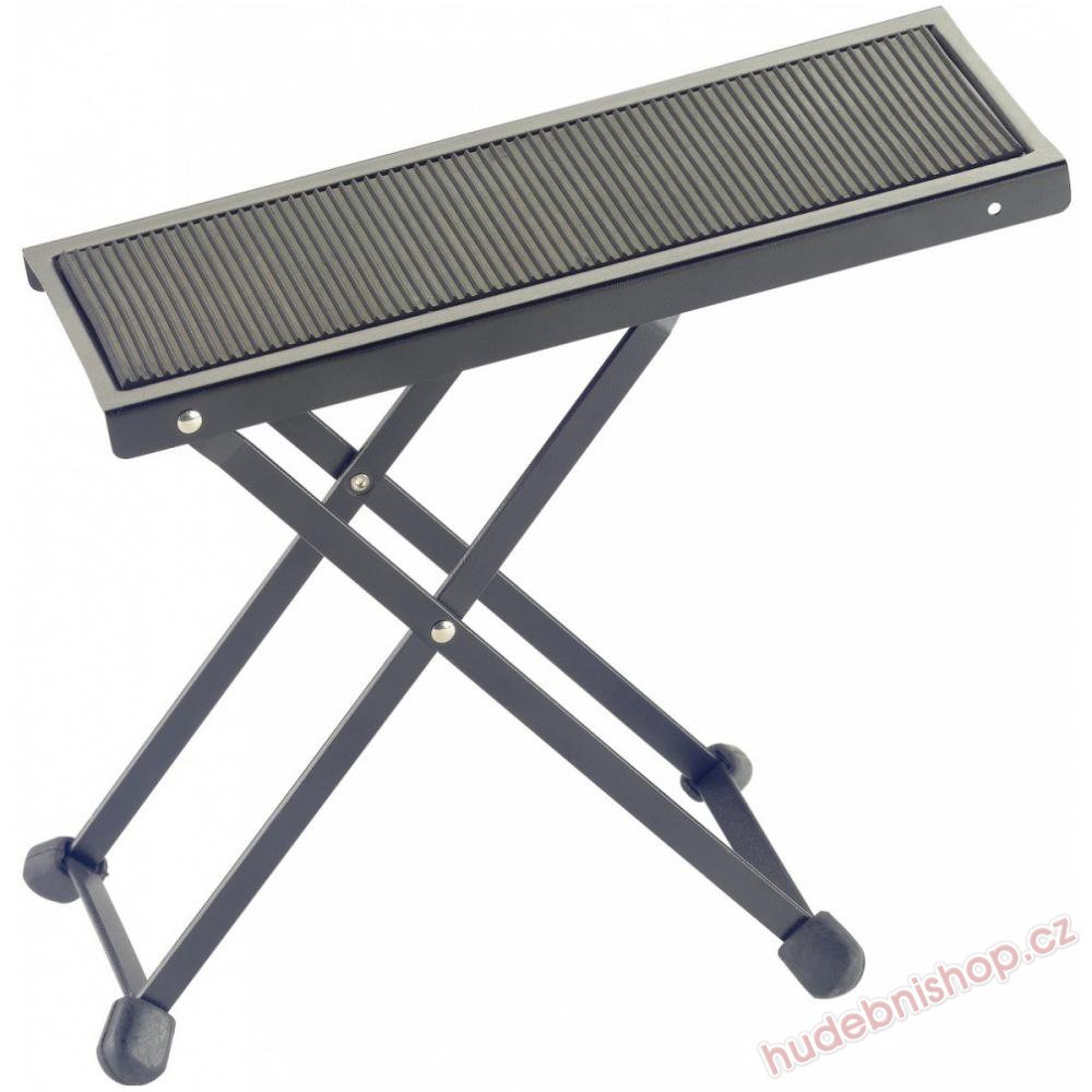 Klasická kytarová podnožka s protiskluzovým povrchem. Černé provedení, skládací, gumové nožky.