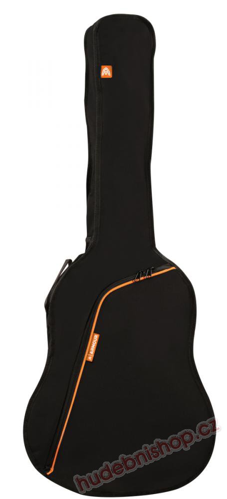Ashton Armour ARM 350C je povlak na klasickou (španělskou) kytaru ve velikosti 4/4. Nabízí voděodolný materiál 600D a atraktivní černý design s oranžovými prvky. Je vybaven 8 mm zipy a vnější kapsou na příslušenství. K přenášení nástroje v povlaku můžete využít ucho, ramenní popruhy, nebo jej můžete nosit jako batoh na zádech. Polstrování 5mm zajistí dostatečnou ochranu vašeho nástroje před poškozením při běžném použití.
