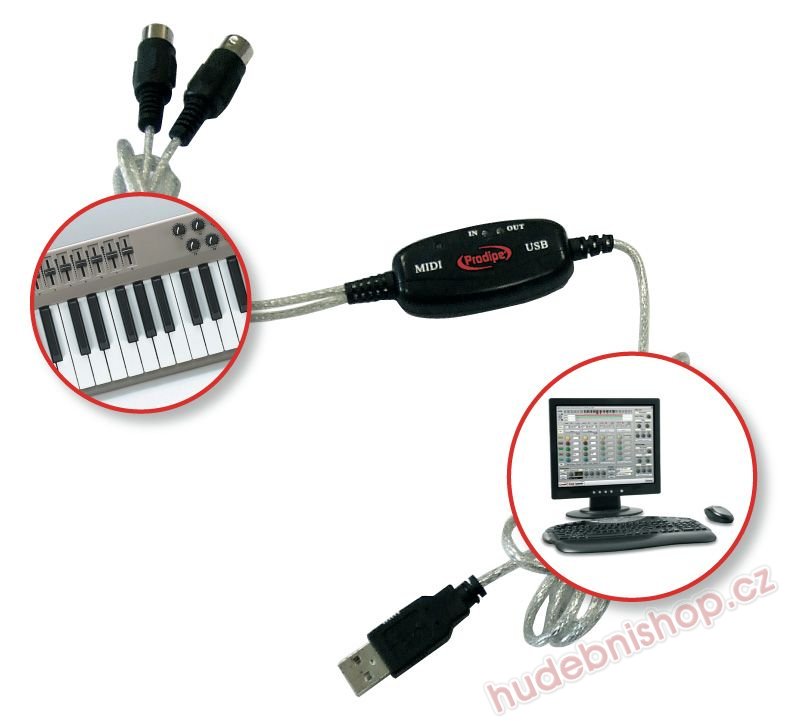 USB MIDI interface, ovladače pro WinXP a Vista, MacOSX, délka kabelů 2m