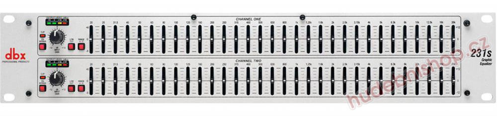 Dvoukanálový 31-pásmový grafický ekvalizér, přepínání rozsahu zdvihu +/- 6 dB/okt. nebo +/- 12 db/okt.