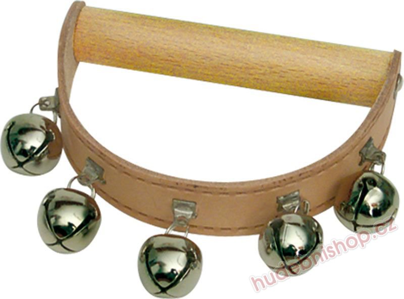 • 5 rolniček na koženém pásku s dřevěným držadlem