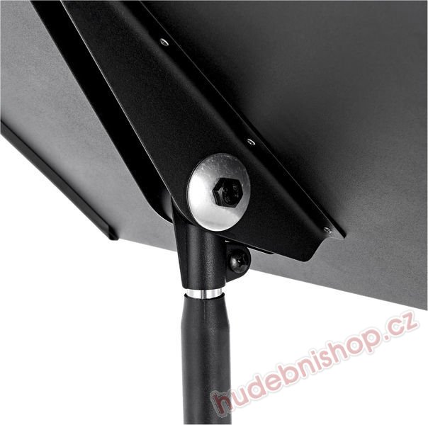 Thomann Orchestra Stand Symphonia 50, orchestra stand with one-hand friction grip height adjustment, steel tripod socket with non-foldable thomann legs but minimum space needed, Height stand 885-1335 mm, aluminium desk 505 x 310 mm, 2-piece folding design, Weight 3 kg, made of metal, Incl.floor protectors