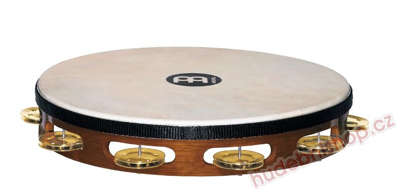 Tamburína do ruky kulatá, s blánou, dřevěná, 1 řada mosazných plíšků