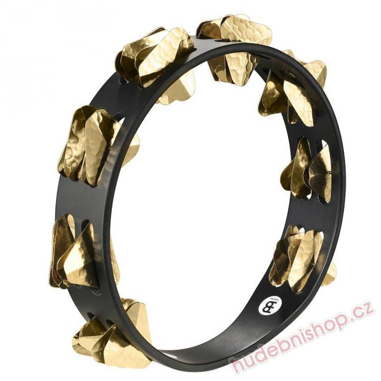 Tamburína do ruky kulatá, dřevěná, 2 řady plíšků, trijúhelníkové tepané