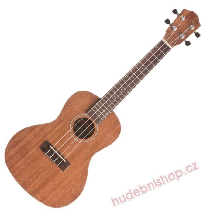 Koncertní ukulele ze série Rouge. Vrchní deska mahagon, spodní deska mahagon, luby mahagon, krk mahagon, hmatník palisandr, menzura 375 mm, šířka nultého pražce 35 mm, ladící mechanika otevřená chromová povrchová úprava Matt Open Pore.