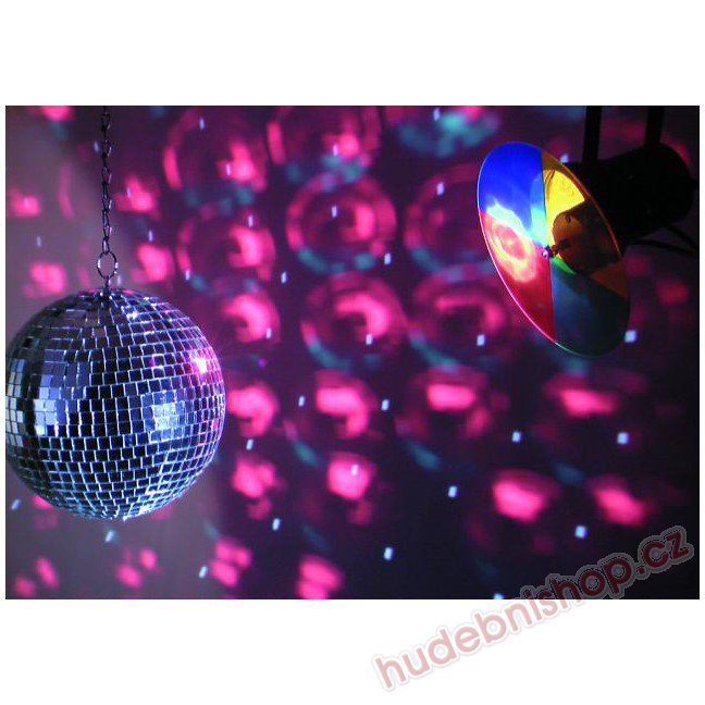Sady obsahují zrcadlovou kouli v různých průměrech, motorek 1,5 otáčky/min. řetěz k upevnění koule. Ideální dekorace pro noční kluby, bary a restaurace.